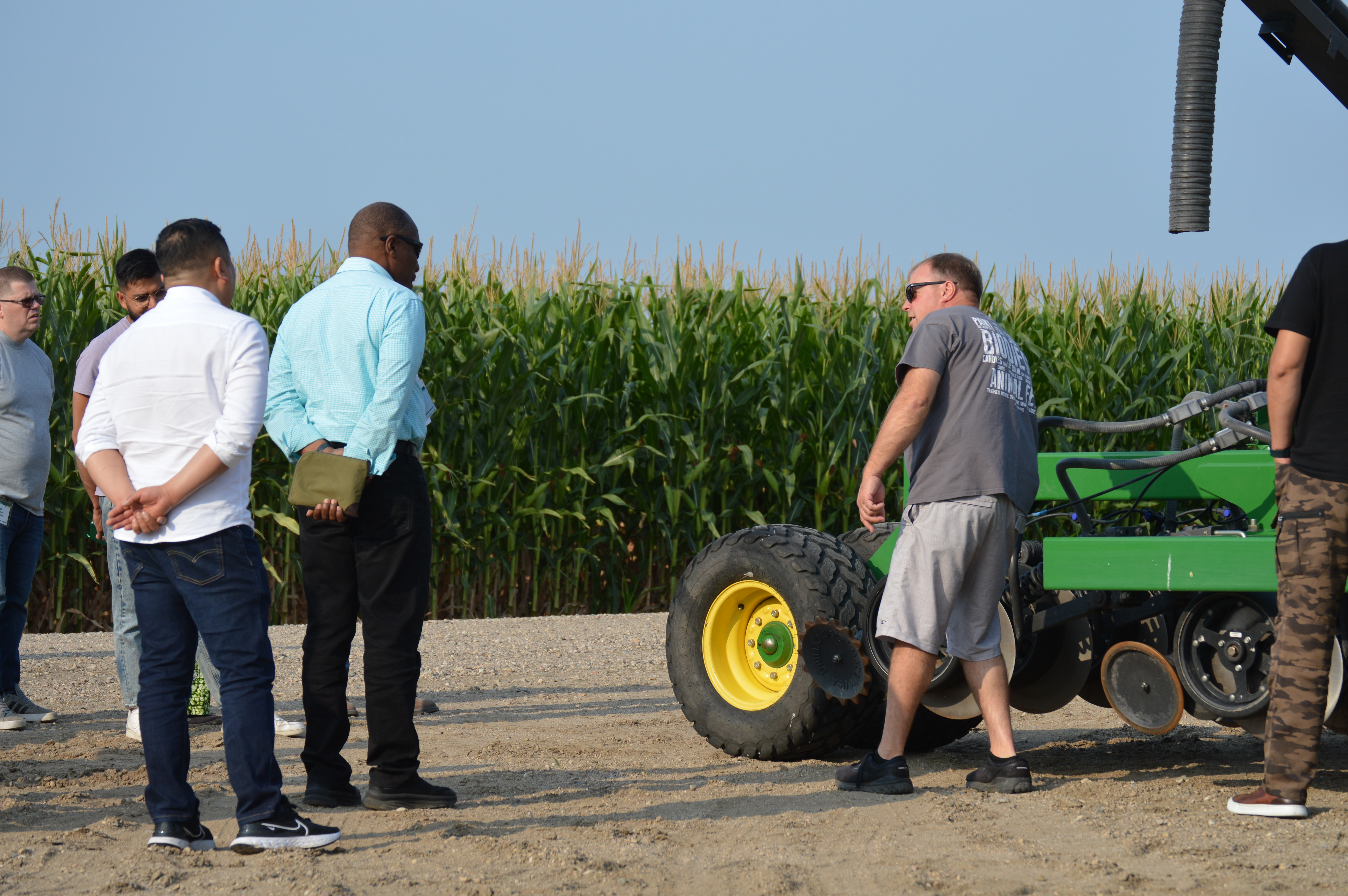A trade team featuring soybean industry leaders from three continents visited Jeremy Tischer’s farm east of Breckenridge on Aug. 7. to learn more about how Minnesota soybeans are grown and the ins and outs of a typical Red River Valley farming operation. The INTSOY trade team was a partnership between the American Soybean Association’s World Initiative for Soy in Human Health (WISHH) Program and the Northern Crops Institute (NCI).