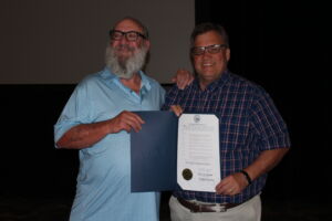 Ted Matthews (left) poses with MDA Commissioner Thom Petersen with a proclamation from Gov. Walz declaring “Ted Matthews Day” in Minnesota.